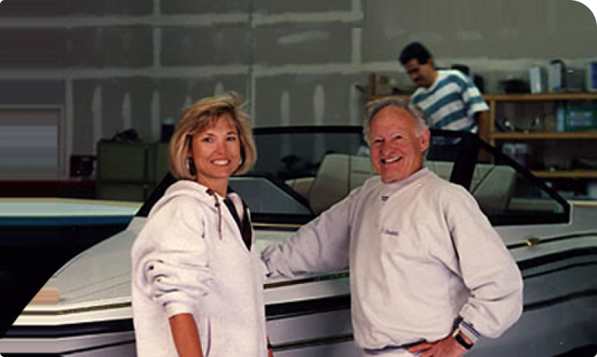At this point in time MB was still a very small, very family-run business with caren doing all the paperwork and answering the phones from a desk right on the factory floor. Mike and his father Irv worke side-by-side, day and night with a few other artisans, building boats by hand.